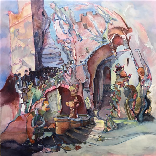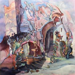 L'entrée des artistes - Aquarelle dans l'humide - 80x60