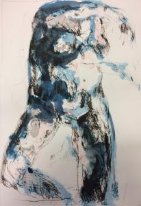 Technique mixte sur toile de lin brute