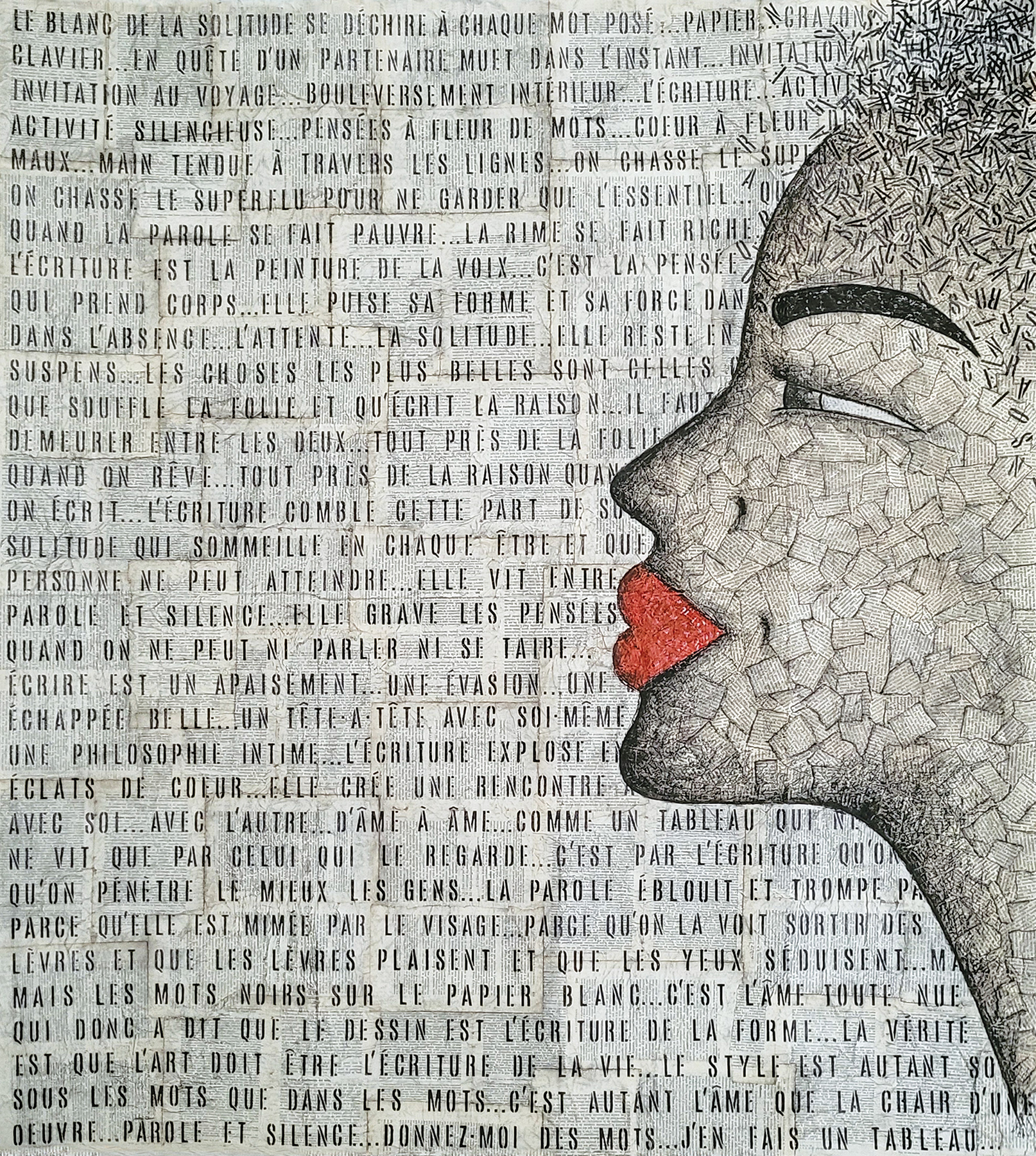 MIXTE COLLAGE/ENCRE/CRAYON