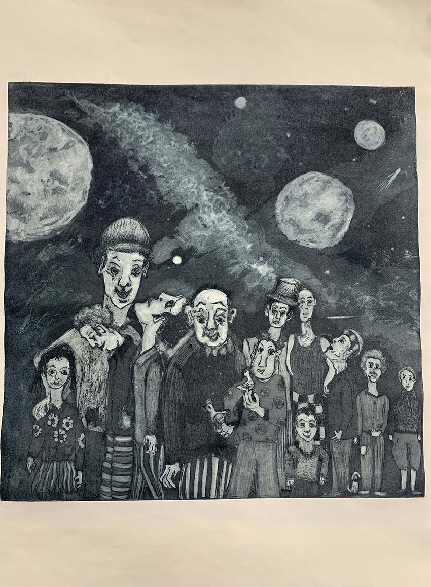 Aquatinte rehausse à l'aquarelle